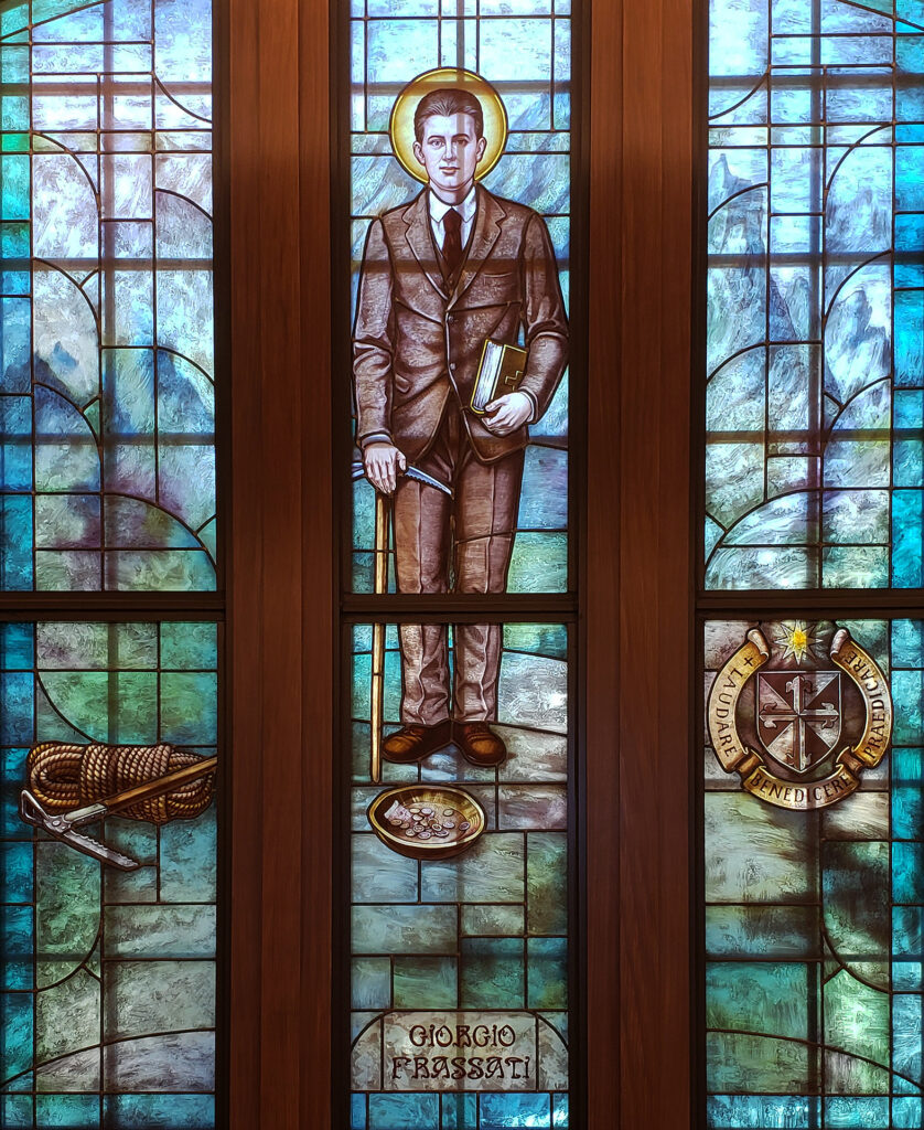 Stained glass window of Blessed Frassati, in the chapel of the new Tim and Steph Busch School of Business at the Catholic University of America, Washington DC. Credit: Fr Lawrence Lew, O.P./Flickr.